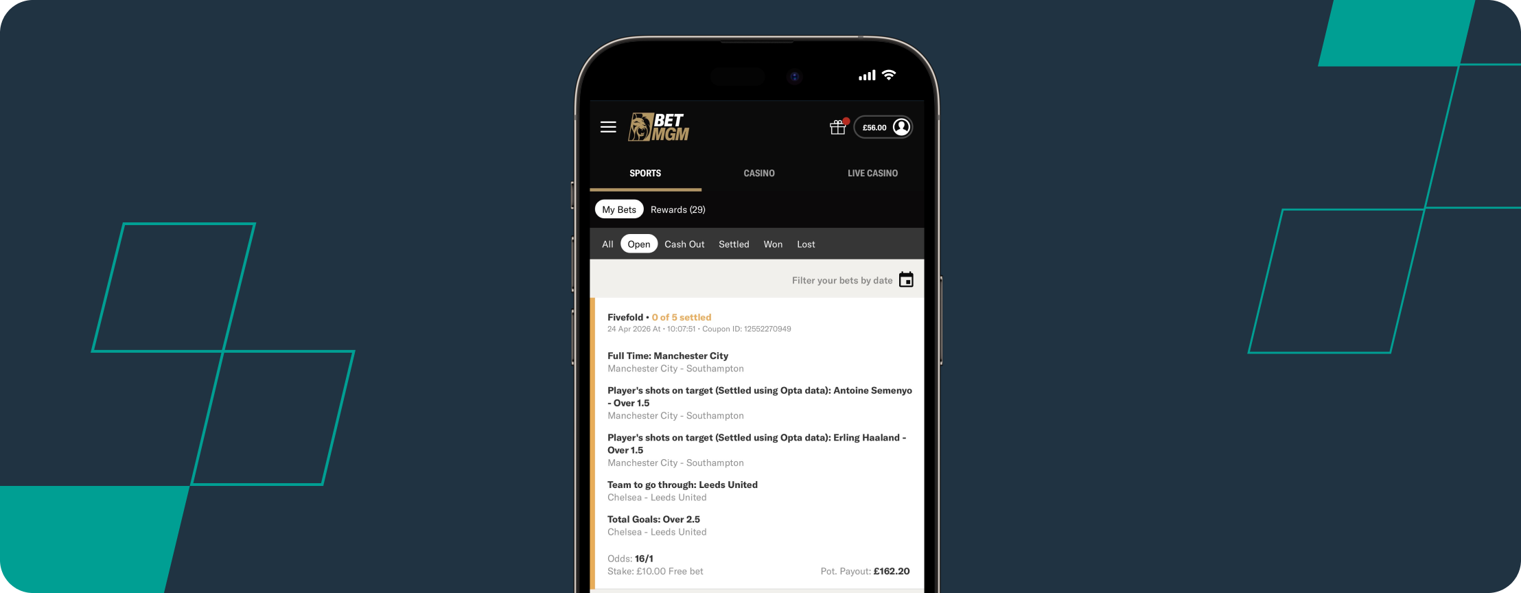 | Leeds to progress + over 2.5 goals | BetMGM | 3/1 | 1 |